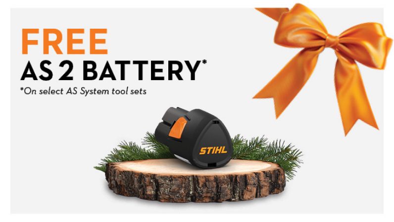 elebrate the holidays with STIHL and enjoy extra value on tools you love. For a limited time, when you purchase select STIHL AS System tool sets, you’ll receive a FREE AS 2 battery—perfect for powering your favorite handheld tools. Built for performance and convenience, the AS 2 battery ensures you’re ready for every task, from trimming to cleanup.